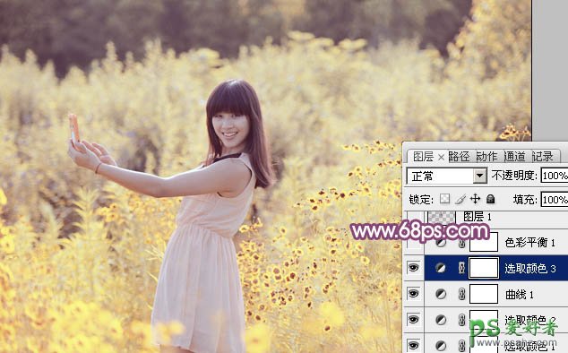 ps黄图片调色教程:给野花丛中的天使少女调出黄图片效果
