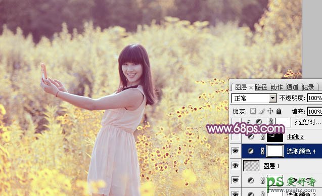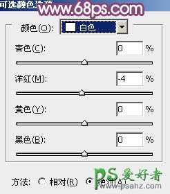 7、创建可选颜色调整图层,对红、黄、白进行调整,参数设置如图23 - 25,效果如图26。这一步微调图片暖色。