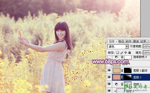 9、新建一个图层填充橙红色:#E19C8D,混合模式改为“滤色”,按住Alt键添加图层蒙版,用白色画笔把右上角部分擦出来,效果如下图。这一步给图片增加高光。