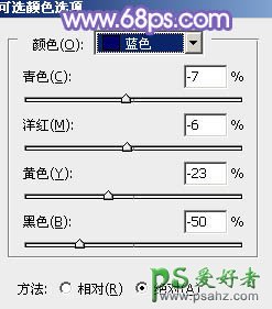 11、创建可选颜色调整图层,对蓝色进行调整,参数设置如图21,效果如图22。这一步把图片中的蓝色调淡。