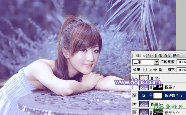 Photoshop给小清新美女调出甜美的淡紫色_小清新美女写真