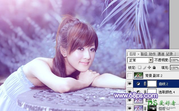 Photoshop给小清新美女调出甜美的淡紫色_小清新美女写真