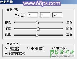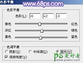 7、创建色彩平衡调整图层,对阴影,高光进行调整,参数设置如图14,15,效果如图16。这一步微调图片暗部及高光部分的颜色。