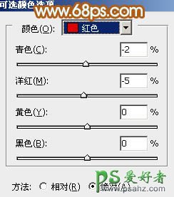 4、再创建可选颜色调整图层,对红、黄、白、黑进行调整,参数设置如图16 - 19,效果如图20。这一步给图片增加橙红色。