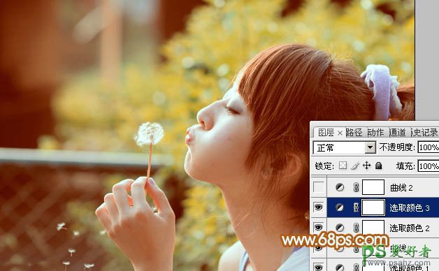 ps飞主流风格图片调色_给公园里的甜美少女调出柔美的黄色调