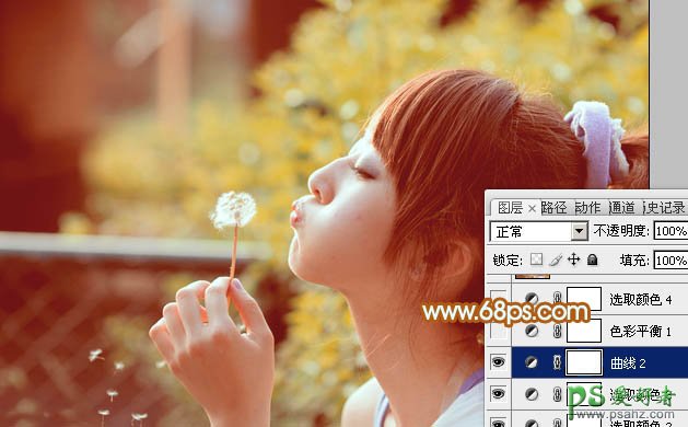 ps飞主流风格图片调色_给公园里的甜美少女调出柔美的黄色调