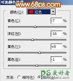 7、创建可选颜色调整图层,对红、黄、白、黑进行调整,参数设置如图30 - 33,效果如图34。这一步主要增加图片中暖色亮度。