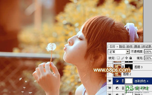 ps飞主流风格图片调色_给公园里的甜美少女调出柔美的黄色调