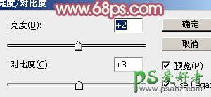 14、按Ctrl + Alt + 2 调出高光选区,创建亮度/对比度调整图层,参数及效果如下图。