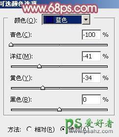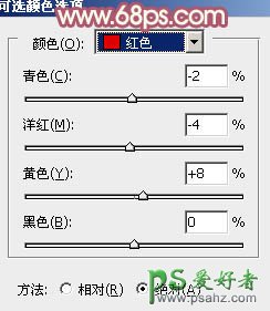 5、创建可选颜色调整图层,对红、黄、蓝、白、中性、黑进行调整,参数设置如图8 - 13,效果如图14。这一步主要给图片增加橙红色。