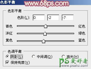 6、创建色彩平衡调整图层,对阴影,高光进行调整,参数设置如图15,16,效果如图17。这一步微调暗部及高光部分的颜色。