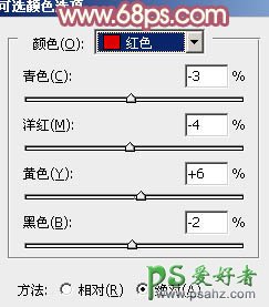 9、再创建可选颜色调整图层,对红,黄进行调整,参数设置如图28,29,效果如图30。这一步同样给图片增加橙黄色。