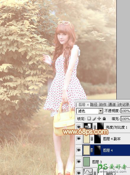 11、新建一个图层填充淡黄色:#EDE3BC,混合模式改为“滤色”,按住Alt键添加图层蒙版,用白色画笔把右上角部分擦出来,效果如下图。这一步给图片增加高光。