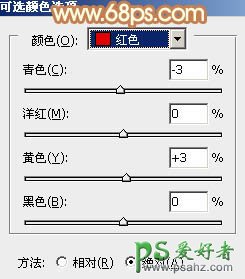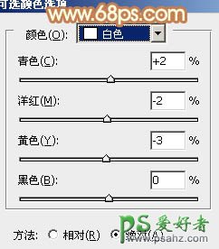 12、创建可选颜色调整图层,对红、黄、白进行调整,参数设置如图34 - 36,确定后把图层不透明度改为:50%,效果如图37。这一步给图片增加淡黄色。