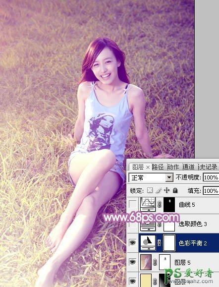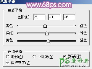 12、创建色彩平衡调整图层,对阴影、中间调、高光进行调整,参数设置如图35 - 37,效果如图38。这一步给图片暗部及高光部分增加蓝色。