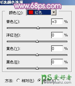 13、创建可选颜色调整图层,对红,黄进行微调,参数及效果如下图。