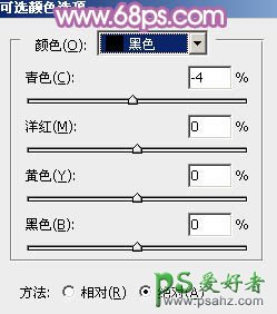 3、创建可选颜色调整图层,对红、黄、黑进行调整,参数设置如图12 - 14,效果如图15。这一步给草地部分增加橙黄色。