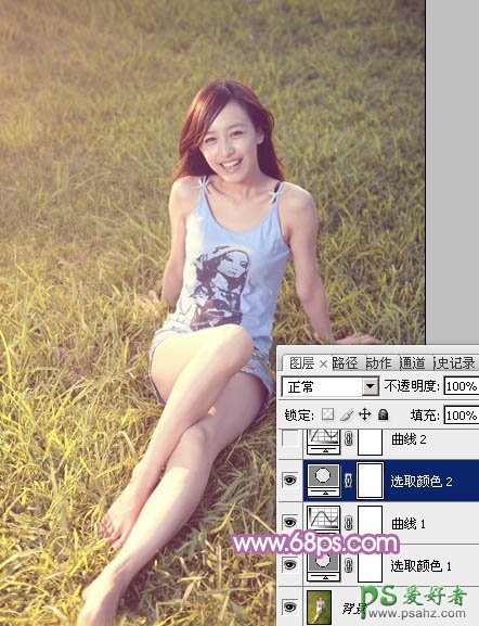 今天我们后期调色师教大家学习一篇漂亮的美女图片调色教程,ps人物照片美化_给草地上可爱的女孩儿调出柔美的蓝黄色,美女图片美化教程,美女照片美化调色实例,人物照片美化后期调色,让甜美女孩儿草地上的写真照变得更甜美,更唯美,更清纯,更浪漫,性感