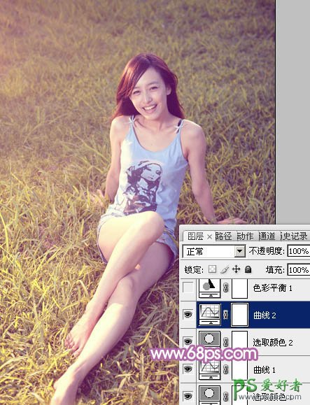 今天我们后期调色师教大家学习一篇漂亮的美女图片调色教程,ps人物照片美化_给草地上可爱的女孩儿调出柔美的蓝黄色,美女图片美化教程,美女照片美化调色实例,人物照片美化后期调色,让甜美女孩儿草地上的写真照变得更甜美,更唯美,更清纯,更浪漫,性感