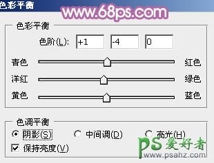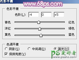 5、创建色彩平衡调整图层,对阴影,高光进行调整,参数设置如图20,21,效果如图22。这一步微调图片暗部及高光部分的颜色。