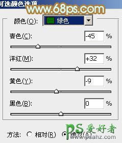 1、打开素材图片,创建可选颜色调整图层,对黄,绿进行调整,参数设置如图1,2,效果如图3。这一步把背景中的黄绿色转为褐色。