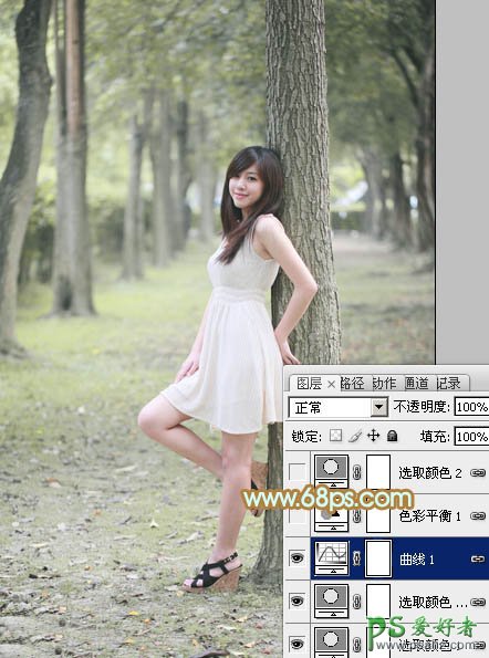 Ps图片处理教程:给树林中的美女照调出青色的图片效果