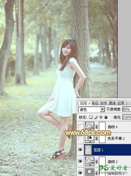 7、按Ctrl + Alt + 2 调出高光选区,按Ctrl + Shift + I 反选,新建一个图层填充黄褐色:#93846F,混合模式改为“滤色”,不透明度改为:50%,效果如下图。这一步给图片暗部增加褐色。