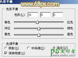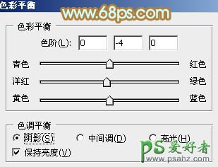 8、创建色彩平衡调整图层,对阴影,高光进行调整,参数设置如图23,24,效果如图25。这一步加强图片暗部及高光部分的颜色。
