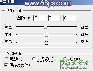 4、创建色彩平衡调整图层,对中间调,高光进行调整,参数设置如图6,7,效果如图8。这一步主要增强图片高光部分的颜色。