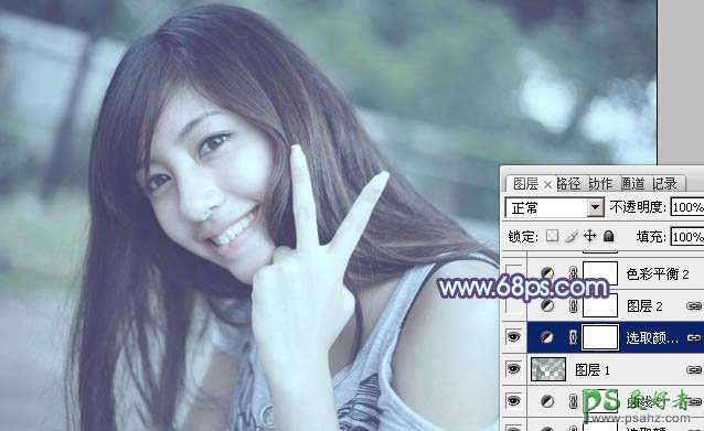 ps宝蓝色美女图片调色教程:给外景自拍MM调出清新的宝蓝色