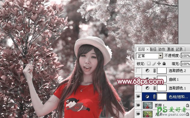 2、创建色相/饱和度调整图层,对青色进行调整,参数及效果如下图。这一步把背景中的青色转为红色。
