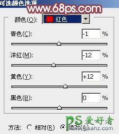 3、创建可选颜色调整图层,对红,黑进行调整,参数设置如图4,5,效果如图6。这样微调图片中的红色及暗部颜色。
