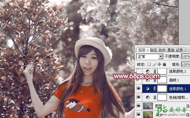 Photoshop给树林中的少女写真照调出暖金色_橙色_暖色调