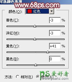 5、创建可选颜色调整图层,对红、黄、白、黑进行调整,参数设置如图11 - 14,效果如图15。这一步把红色转为橙黄色,高光部分增加淡黄色。