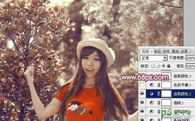 Photoshop给树林中的少女写真照调出暖金色_橙色_暖色调