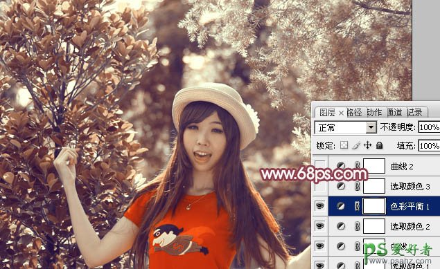 Photoshop给树林中的少女写真照调出暖金色_橙色_暖色调