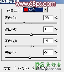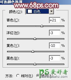7、创建可选颜色调整图层,对红、黄、白、黑进行调整,参数设置如图19 - 22,效果如图23。这一步给图片增加橙黄色,高光部分增加淡青色。