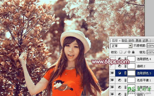 Photoshop给树林中的少女写真照调出暖金色_橙色_暖色调