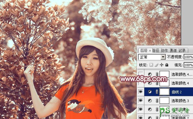 Photoshop给树林中的少女写真照调出暖金色_橙色_暖色调