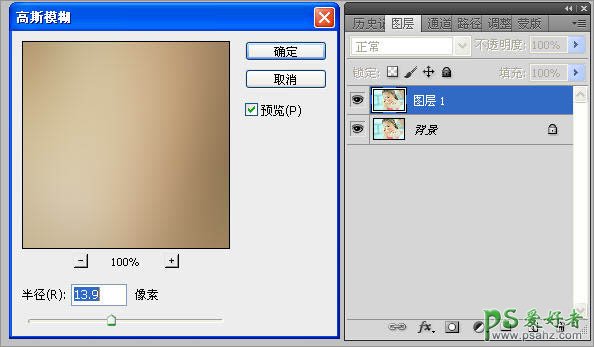 8、复制背景层-高斯模糊- 添加蒙板,前景色为黑色将人物脸部擦出。