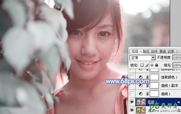 1、打开素材图片,按Ctrl + J 把背景图层复制一层,进入通道面板,选择绿色通道,按Ctrl + A 全选,按Ctrl + C 复制,选择蓝色通道按Ctrl + V 粘贴,点RGB通道,返回图层面板,效果如下图。