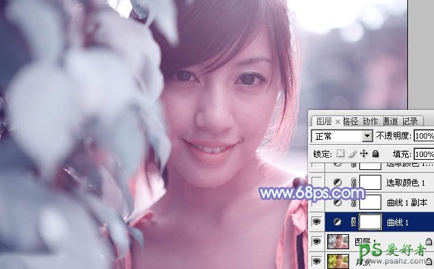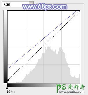 2、创建曲线调整图层,对RGB,蓝通道进行调整,参数及效果如下图。这一步适当增加图片暗部亮度,同时给暗部增加蓝色。