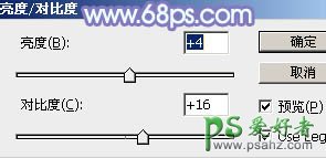 6、创建亮度/对比度调整图层,适当增加亮度及对比度,参数及效果如下图。