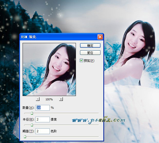 6、盖印图层(shift+ctrl+alt+e),进行锐化操作。如图: