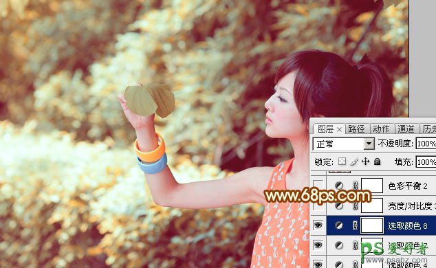 PS唯美意境图片调色:给树林边的女生调出非主流图片唯美效果