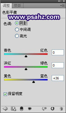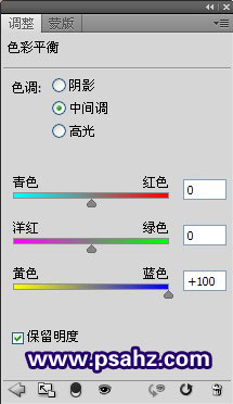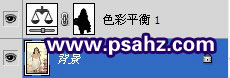 在色彩平衡的调整层右边蒙版处,使用黑色画笔将人物擦出,如图: