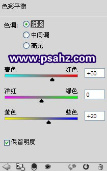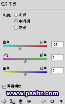 2、调节人物色调,再添加一层色彩平衡调整图层,观察人物肤色以红色为主,接下来我们调整一下,设置如图: