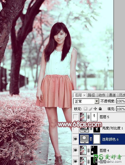 ps街景图片MM调色教程:给公园绿树下的MM调出甜美粉调青红色