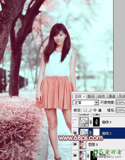 17、创建曲线调整图层,对RGB通道进行调整,把暗部稍微调亮一点,参数及效果如下图。