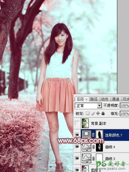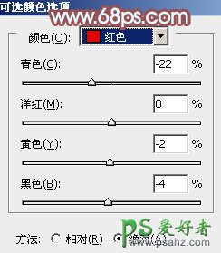 18、创建可选颜色调整图层,对红色进行调整,参数设置如图42,确定后用黑色画笔把人物部分擦出来,效果如图43。这一步把背景部分的红色调淡。